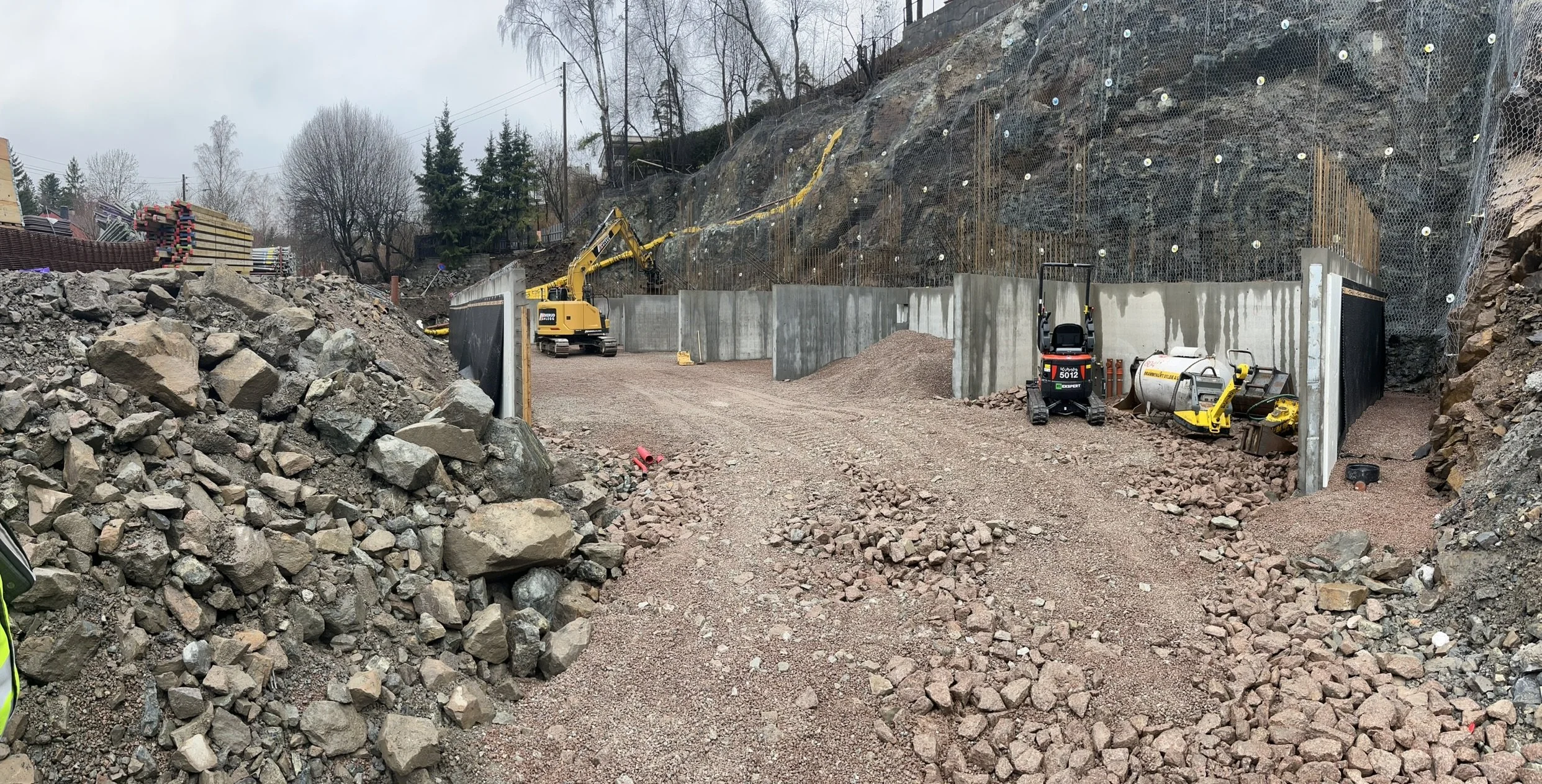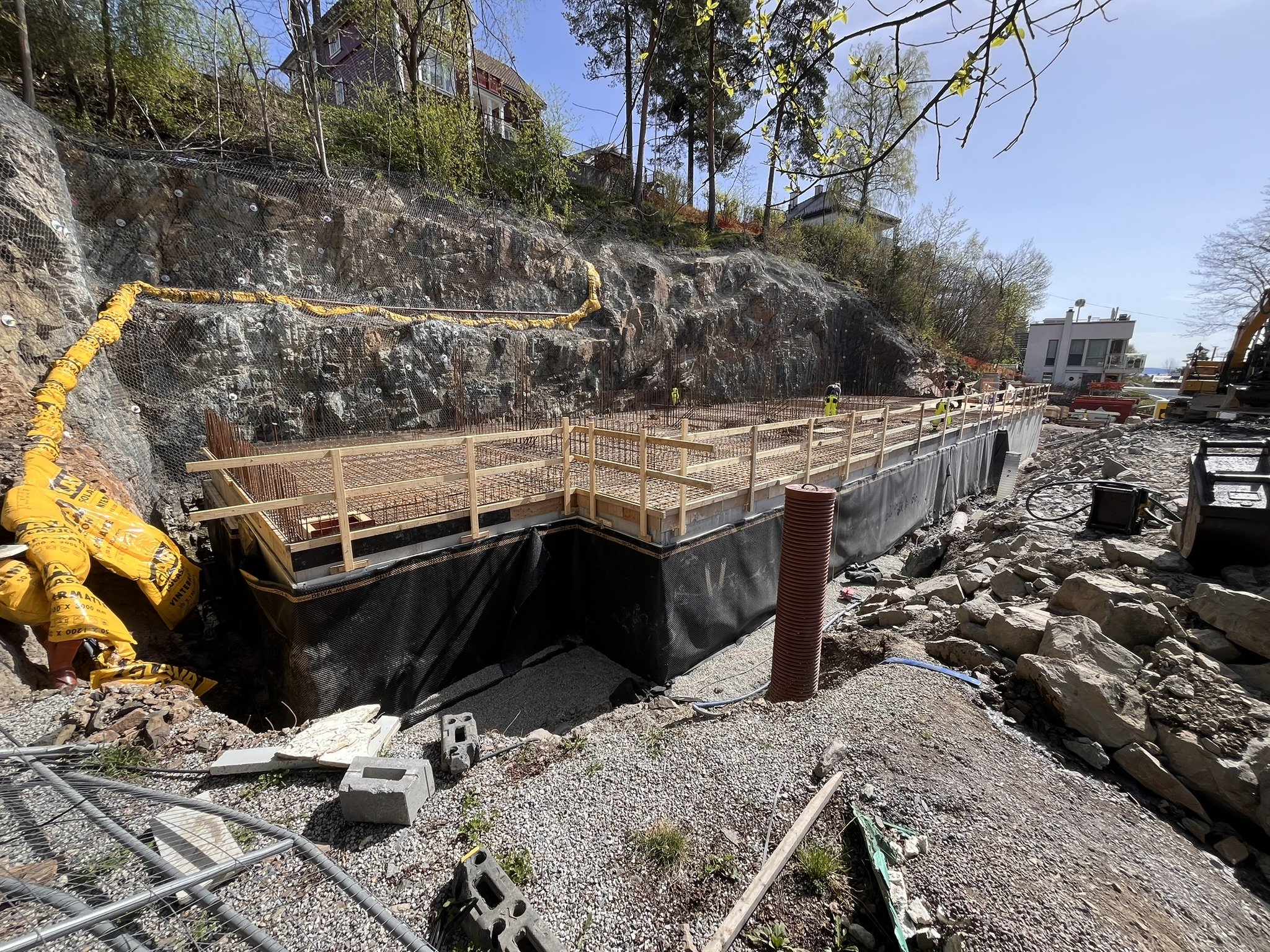 I en bratt skråning mot Frognerseterveien, er seks rekkehus under oppføring. Boligene har oppholdsrom med store utsiktsvinduer på øverste plan. Herfra kommer man også ut på terrasse inn mot grøntområdet i bakkant, eller opp på takterrassene.